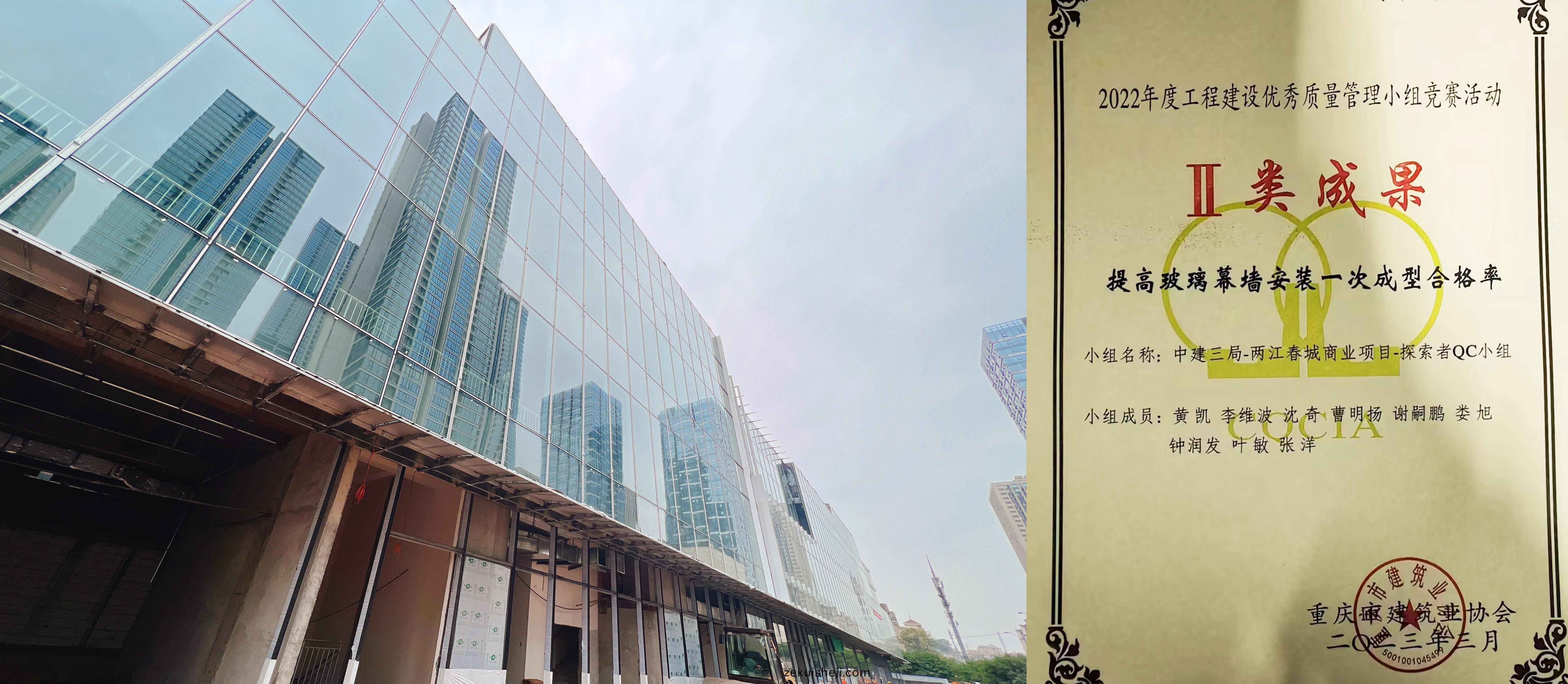 幙牆(qiang)分(fen)公(gong)司重慶(qing)兩江(jiang)旾城(cheng)商業項目榮穫(huo)“重(zhong)慶(qing)市(shi)2022年度QC小組(zu)競賽”成(cheng)菓獎