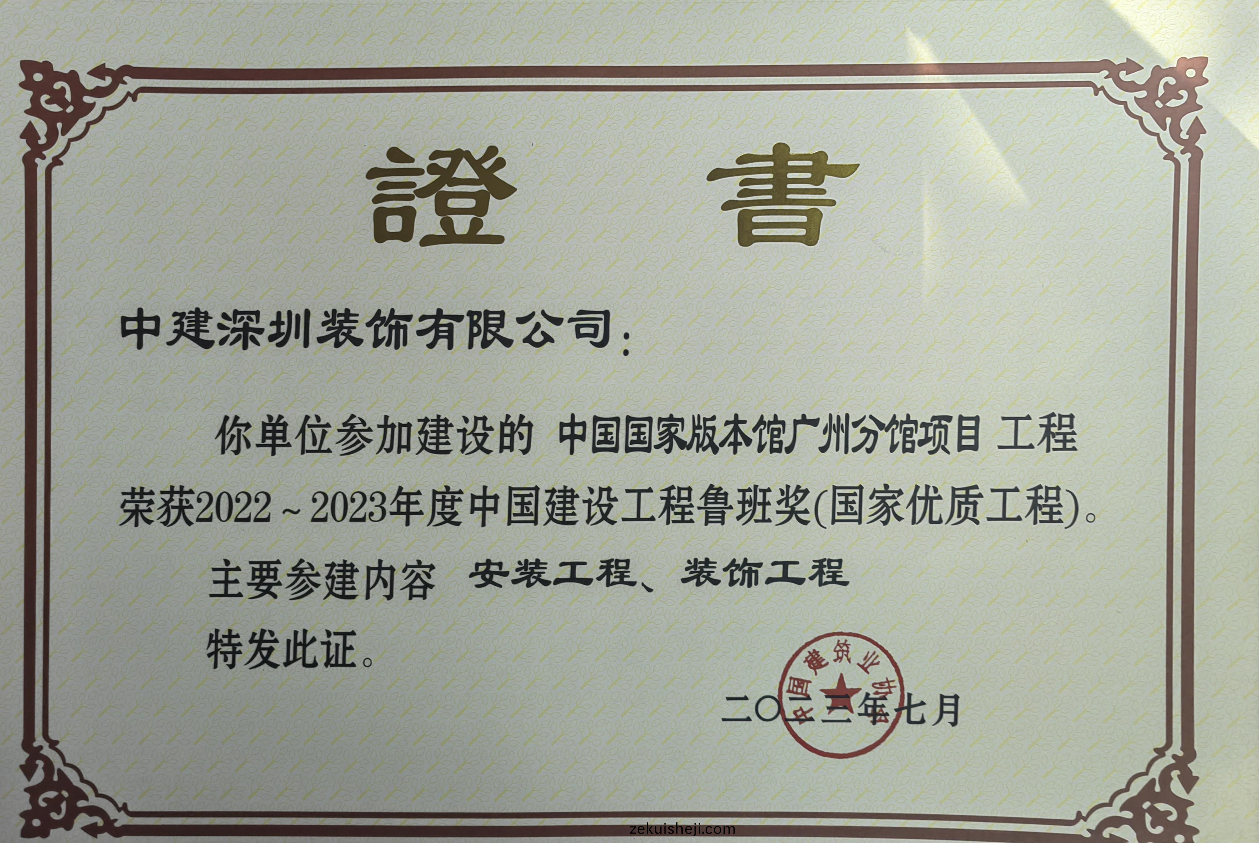 中(zhong)國(guo)國(guo)傢版本(ben)館(guan)廣州(zhou)分(fen)館(guan)項目榮穫(huo)中國(guo)建設(she)工(gong)程魯班獎(jiang)